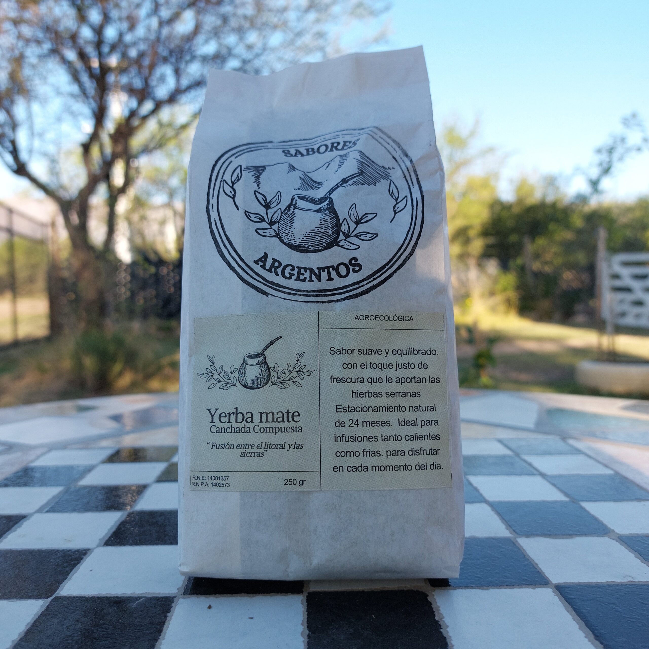 Yerba mate canchada picado grueso. Secado barbacuá. Estacionamiento natural de 24 meses.